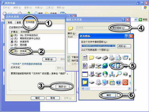 小贴士:文件类型的图标修改后,整个系统中的文件类型图标都要跟着变,建议不必修改得过多。在修改文件类型的图标时要注意,在编辑文件类型的设置中的操作请不要乱设置,这关系到系统整个操作,如你对电脑不熟悉,乱设置后会给你的操作带来麻烦。这里你只是更改图标设置。