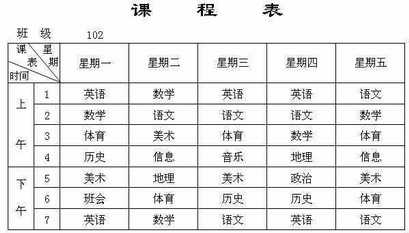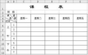 3.切换到“班级课表”中,按如图2所示的样式,制作一张空白课程表,并设置字体、字号、添加边框等。