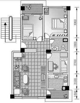 新建一个文件,用自选图形组合绘制出门窗、楼梯、家具、标注等各种图形。这一步关键是选择适当的自选图形和灵活应用对齐、组合、翻转等功能,当然还要对各个组件设置相应的填充效果。例如:1条粗直线+填充白色的90°圆弧经左、下对齐后组合就是门;自选图形中的折页+2小1大共3个圆角矩形可组成双人床;2段小直线+双箭头+无边线色的文本框就是一个伸缩自如的尺寸标注等。此外,在绘制时可以先不严格按照比例尺绘图,而在组合好图形后再从“设置图形格式→大小”中直接输入尺寸。