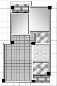画出阳台并拖动到相应位置。图中这两个阳台是用两个矩形拼成,对复杂阳台的画法可参考前几步的作法,这里不再赘述。结构柱用填充色为黑色的矩形绘制,按比例设置好尺寸,再按住Ctrl键拖动复制到相应位置。完成后效果如图6。