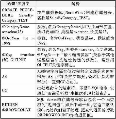 3.代码的第三部分是创建存储过程,详细分析见上表。