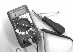 所需工具:大小十字螺丝刀、万用表、蒸馏水及棉花棒(图1)。