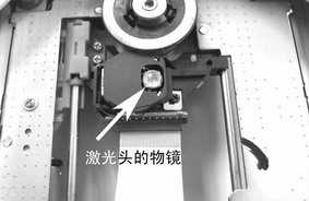 1.拿起螺丝刀拆下前挡板,然后剥掉光驱的“外衣”,直至看到“裸露”的激光头(图2),实际上我们所看到的是物镜,激光头还在它的下面。