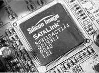 外置的SATA控制芯片是最早出现在市场上的,如早期的Silicon Image公司的SIL3112A SATA控制芯片、PROMISE PDC20376,以及Marvell的8818030SATA转并行ATA控制芯片在2002~2003年初期的豪华主板上也很常见。但随着越来越多的南桥产品中集成了SATA控制器和简单的RAID控制器,独立的SATA控制芯片产品市场范围越来越小,所以各个控制器厂商都另起炉灶发布了更加专业的SATA RAID控制产品,如HighPoint的RocketRAID 1820、PROMISE的SATA150 TX4、RAIDCore的RC4000都是比拼专业SCSI技术的顶级产品。涉及到高深的磁盘阵列知识,本文并不着重对这些产品作详细的介绍。