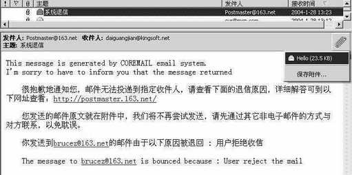 2.如果出现如图1所示的系统退信时,请不要打开其中的附件;
