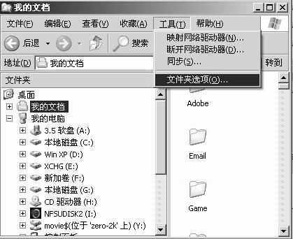 1.打开资源管理器,单击“工具”,再单击“文件夹选项”(图2);