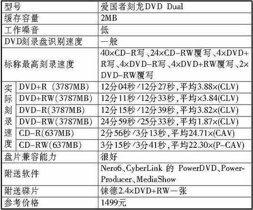 1.爱国者刻龙DVD Dual