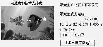某些品牌机在系统属性对话框里会显示制造商和和技术支持商信息。为了突出个性,我们可以改动其中的内容,更改后的情况如图所示。