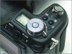 接下来我们来看看机器的面板,DSC-F828提供了LCD取景和电子EVF取景,LCD的面积较F717有所扩大,这样观察拍摄照片的时候就更加清晰和细致了。LCD的右侧是触摸杆,可上下左右随意调节,且弹性很到位,操作准确性极高。触摸杆旁边有一个圆形齿轮,可在设置各种参数的时候辅助调节,显示屏中会有滚动线条显示,操作上十分方便。