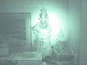 这就是夜景模式下的图像,我们看到图像的中央有圆形的光环,比周围的景物都要亮一些,这就是我们前面提到的在夜景模式下安装了遮光罩的效果,去掉遮光罩后的效果会好很多。从照片观察,红外线下的图像呈黑白色,略带浅绿,和我们平日在战争电影中看到的夜视镜的效果一模一样。