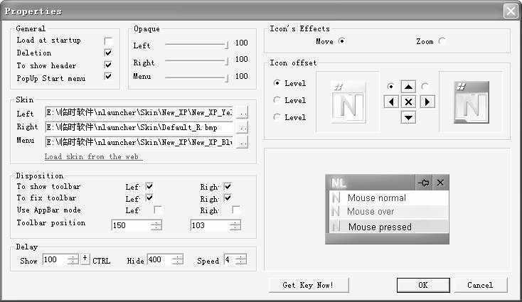 Skin:设置工具条的外观,在软件目录的Skin文件夹下选择合适的外观,用名字中的L、R、M可分辨出它们是适合哪个工具条的外观文件;