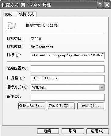 上面的方法只限于用户在开机时打开特定的文件夹,使用有很大的局限性。现在让我们给文件夹定义一组热键,让用户可以随时随地地打开特定的文件夹。仍然以“12345”文件夹为例加以说明。在桌面上建一个“12345”文件夹的快捷方式,选择该快捷方式的属性,并在“快捷方式”选项中的“快捷键”中按下自己习惯的快捷键组合,如图2。同样,其他程序也可以通过这种方法来定义自己的热键启动。