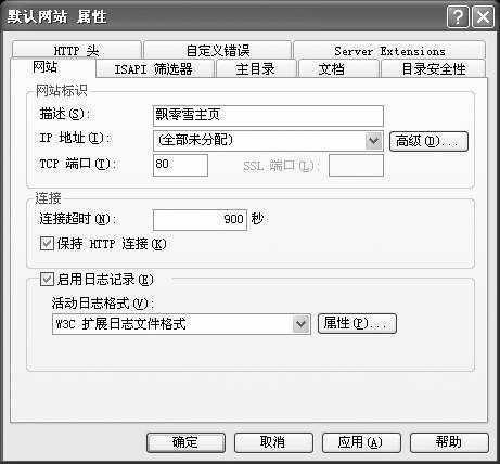 在系统的“管理工具”中打开“Internet信息服务”,在该程序界面里展开左侧视图列表,定位于“本地计算机→网站→默认网站”,然后用鼠标右键单击,在弹出菜单中选择“属性”,弹出一个对话框。这里需要特别注意以下相关设置。