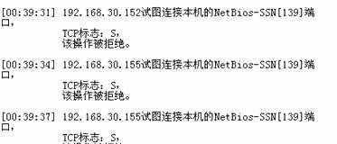 如图1所示的日志表明:来自于局域网内的一台电脑正试图访问你电脑的139端口,但该操作未能成功执行。