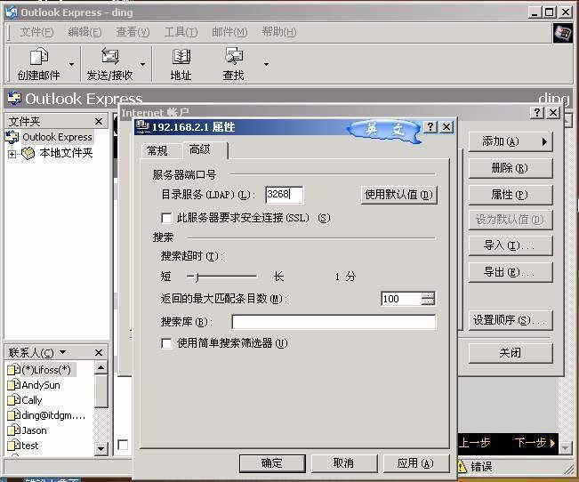 3.到此,我们就实现了查询LDAP信息的功能。如果你要把查询到的邮件地址保存到本地的“个人通讯簿”中可以选择“添加到通讯簿”,或者选择指定的邮件地址,单击鼠标右键选择“添加到通讯簿”,实现全网用户的联系资料共享了。当然,这只是LDAP技术的一个非常小的应用了。