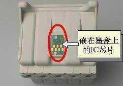 在许多原装墨盒底部,我们都会找到一块小小的IC芯片(如图)。该芯片其实只是附在墨盒上的,和墨盒的内部并没有什么联系。那么,它是怎么知道我们是否充墨了呢?