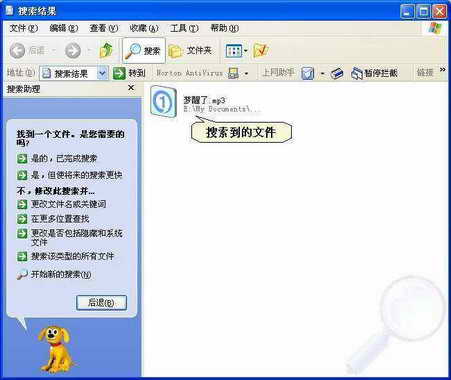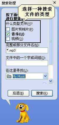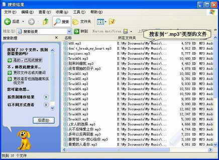 有时候我们忘了需要搜索的文件的名称,这时可不可以找到这个文件呢?当然可以。搜索程序支持*、?等通配符搜索功能,我们可以通过该功能快速地搜寻某一类型的文件。如搜索MP3文件时,在“全部或部分文件名”文本框中输入“*.MP3”,指定搜索路径后单击“搜索”按钮即可对该类文件进行搜索(图4)。