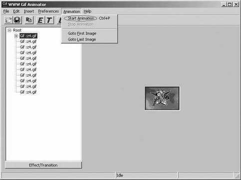 如果大小比例与96×65像素的比例不相同也没关系。使用Adobe ImageReady打开此动画,将它另存为PSD文件,然后进入Photoshop调整好图片的大小,再把此文件的每一个图层都保存为JPG或GIF文件,最后用WWW Gif Animator将它们合成GIF动画,通过Start Animation预览效果,按保存键保存 (图1)。