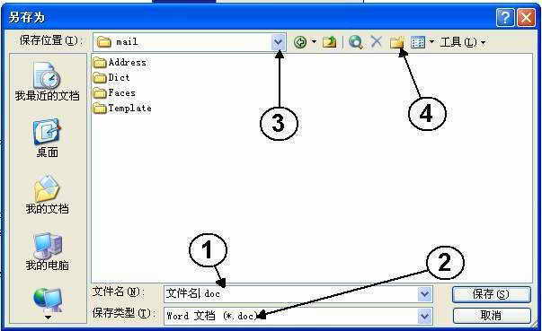 这里我们以在Word中创建新文件和文件夹为例来介绍。在Word中新创建一个文档后,从“文件”菜单中选择“保存”,这时Word会弹出一个对话框(图5)。