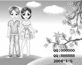 素材已备好,下面继续吧。在HyperSnap中切换到MM的窗口,点击绘图工具栏上的“复制”按钮,再切换到背景窗口,点击绘图工具栏上的“粘贴”按钮,调整好MM的位置,通过白色箭头按钮确定。然后把你的形象也复制粘贴过来,调整好和MM的距离,确定。如果不合适的话,可使用“撤销、重做”按钮。还少什么呢?QQ号和拍照日期这不难,使用绘图工具栏上的“添加文字按钮”可轻松实现。点击符号“A”,在弹出的对话框中输入QQ号和日期,字体字号颜色按需调整,确定,然后对文字底色进行透明处理,结果如图3所示。