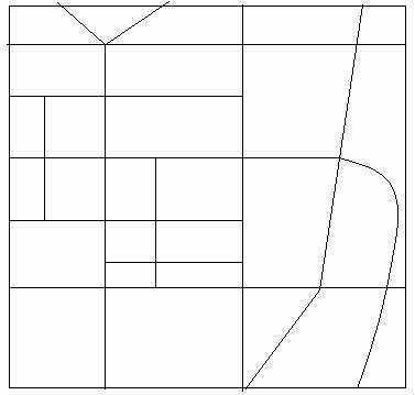 启动金山文字2003,按所需地图的大小画一个矩形作为地图边界,然后用直线、曲线等画出各条街道(图1)。