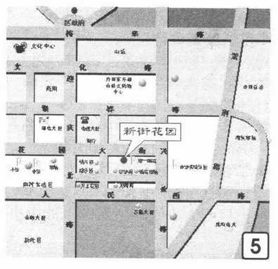 在地图的四边各画一条直线,设置边线颜色为白色,宽度为10,用来遮住道路线条末端的突出部分。最后插入一些标志,再用单行文字加上标注文字,地图就绘制完成了(图5)。
