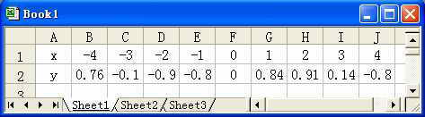 下面我们利用“图表向导”制作函数图像。先选定表格中的数据区域,再单击“插入→图表”命令,打开“图表向导”对话框,在“图表类型”窗口中选择“XY散点图”中第三种子图表;点击“下一步”,采用默认设置;再点击“下一步”,进入“图表选项”窗口,进行如下设置: