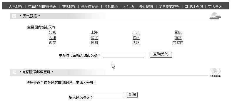 在Baidu首页下方有一个“搜索工具”。点击进入后再点击页面上方的“生活秘书”,在弹出的如图3所示的页面中,你可以对“天气预报、电话区号邮编查询、电视预报、列车时刻表、飞机航班、万年历、外汇牌价”等与生活密切相关的信息进行查询。点击相关链接即可进入相应页面。