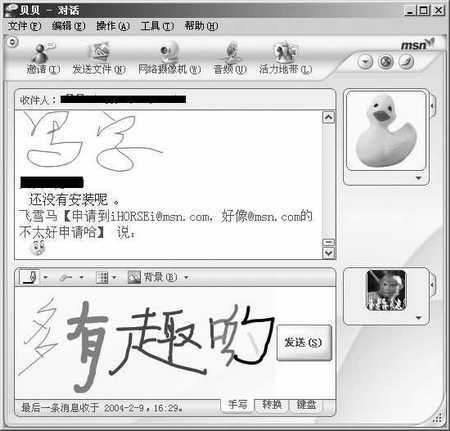 大家玩过在MSN Messenger中使用个性化显示图片和表情图标了,可否想过直接在聊天窗口中用鼠标写字,向聊天好友发送包含你的个性“涂鸦”作品的消息呢?这可更有意思呀!