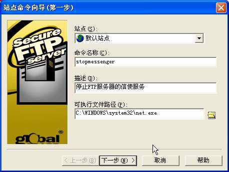 这些自定义命令要实现远程控制系统服务的功能,需要FTP服务器相关功能的支持。下面我们以“GlobalScape Secure FTP Server”FTP服务器为例,远程关闭Windows系统的“Messenger”(信使)服务。