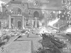 场景一换,主角来到了具有印度风格的皇宫里,到处都是成堆的狂暴不死族十字军战士和食尸鬼,暗处还有使用十字弓偷袭的弩弓手,玩过《英雄萨姆2》的玩家肯定能想象出那种敌人铺天盖地杀过来的景象。看我手持旋风利刃还有忍者电枪,杀得敌人丢盔卸甲……