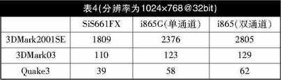 SiS661FX集成的显卡支持64MB的共享显存,不支持DirectX8,所以它的对手只能是i865G集成的显示单元。