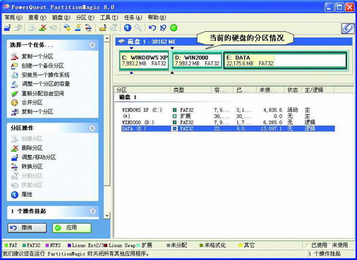现在很多品牌机使用的硬盘容量一般不低于40GB,有的甚至是100GB、120GB。笔者手中的DELL品牌机,购买时配备的硬盘就是40GB,被分为C、D、E三个分区,C盘安装了Windows 98,D盘是笔者自己安装的Windows XP,E盘用来保存一些文件和网上下载的软件。笔者感觉这三个分区不太合理,总想再多划分出一个分区存储系统、驱动备份文件。那么怎样才能在不损坏系统文件的基础上对硬盘调整分区呢?其实我们使用PQ Magic魔法师软件就可以达到目的。