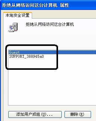 出于安全方面的考虑,Windows XP缺省设置下是禁用Guest账户的,这样其他办公室的老师就无法访问校长办公室的共享资源了,这里我们从“控制面板→用户账户”下启用Guest账户,同时从“控制面板→管理工具→本地安全策略”中打开“本地安全设置”窗口,逐层展开“安全设置→本地策略→用户权利指派”项,将“拒绝从网络访问这台计算机”列表框中的“Guest”删除(见图2)。