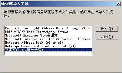 2.打开Outlook Express程序,选择“文件/导入/其他通讯簿”,在“通讯簿导入工具”中选择“文本文件(以逗号分隔)”,然后按“导入”(图3)。将上一步生成的文件导入,在导入时要选择一些列表映射,如:姓氏-姓,名字-名,商务电话-业务电话,家庭电话-住宅电话,移动电话-移动电话(自动映射)。