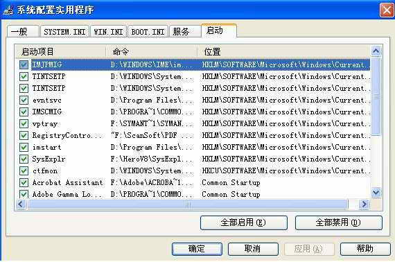 依次点击“开始→运行”,在“运行”对话框里键入“Msconfig.exe”,按“确定”即可打开“系统配置实用程序”窗口。切换到“启动”选项卡,就可以看到随系统启动而自动加载的程序项(图4),显示了启动项的“项目名称”、“命令”和“位置”等信息。