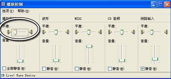 在桌面的托盘双击音量的喇叭图标,弹出控制窗口(图1)。在第一个播放控制选项下面将平衡的均衡器拉到一边,拉到左边就是左声道,拉到右边就是右声道。