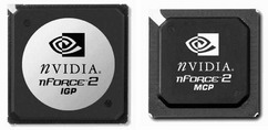 NVIDIA公司目前的主板芯片组产品都是针对AMD处理器的,当它推出nForce2系列芯片组之后,NVIDIA在芯片组市场的地位一下子就提升了起来。最初推出的nForce2芯片组包括两套不同的南、北桥控制芯片,每一颗芯片在功能上的设计都有所不同。