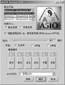 实际上,创新早期的SB Live!也是能够支持ASIO的,只是该产品的驱动程序并不能实现ASIO,但在修改版驱动程序中是能够实现的(参见《电脑报》2004年第5期F9版)。另外,中低档声卡常用的CMI8738芯片也是具备ASIO的潜质的,只是因为驱动程序的原因而没有将它发挥出来。