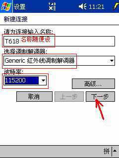 打开手机的红外或蓝牙功能,在PPC上点击“连接”即可。