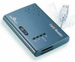 此外,读卡器又可被分为单功能读卡器和多功能读卡器两种。单功能读卡器一般只能读取一种类型或相兼容类型的存储卡,如CF卡读卡器一般可以兼容CF-Ⅰ卡、CF-Ⅱ卡和MicroDrive,xD卡读卡器一般可以兼容SM卡和xD卡,但CF卡读卡器不能读取SONY记忆棒,MMC卡读卡器也不能读取xD卡。而多功能读卡器则可支持多种存储卡,一般常用的存储卡,无论是SM卡、CF卡还是SONY记忆棒都可以轻松读取。拥有了多功能读卡器后,就不需要为各种不同的设备安装不同的驱动程序和文件传输软件了。最重要的是,现在单功能读卡器和多功能读卡器的价格相差不大,所以一般情况下建议首选多功能读卡器。