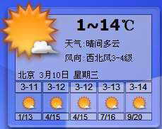 邵文彬朋友带来的XDeskWether是一款非常漂亮的桌面天气预报装饰品,它可以按用户所设定的地区(默认支持全国2000多个县级以上地区、城市),定时更新(默认是每小时)显示6天内天气情况。最妙的是,你还可以自己订制,这样全球天气变化就尽在掌握中。软件“个头”为1.12MB,可从http://down.tech.sina.com.cn/cgi-bin/detail.cgi?s_id=10668下载得到。