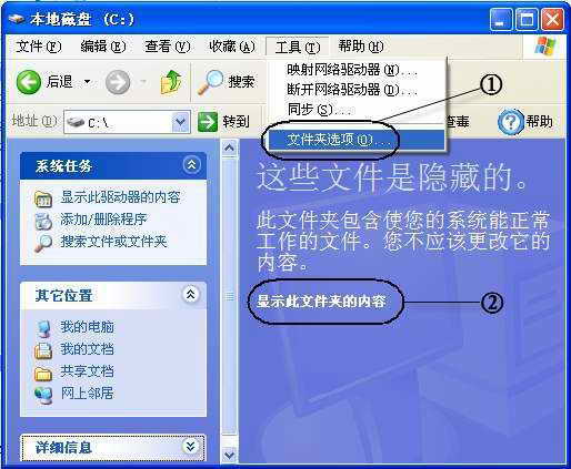小贴士:系统文件夹是指正常运行 Windows 所必需的文件夹。例如我们常提到的Windows、Documents and Settings、System32等文件夹,这些文件夹的默认属性是隐藏的(《文件从何而来》一文中有关于文件属性的解释)。