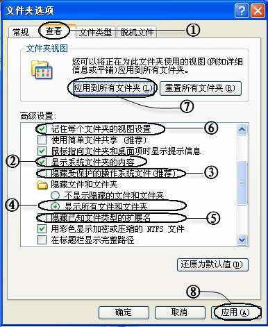 除了选择是否显示系统文件夹外,这里还有许多关于文件显示的相关选项。