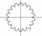 4.继续进行,再次选择椭圆工具,同时按住Alt键和Shift键,用鼠标从辅助线的交点往外拉出一个圆形,这个圆形应当比前一个圆形小很多,按住Shfit键,同时选择齿轮图形和圆形,选择菜单“修改→结合→打孔”,即可获得最终的齿轮图形,然后进行填充,加上阴影(外加功能工具栏的阴影按钮),一个精确的齿轮就出来了,如图6。