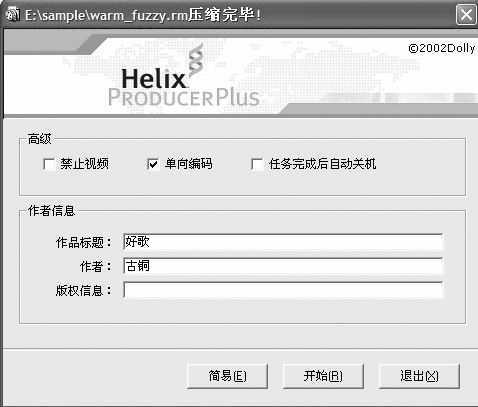 最后点开始按钮进行压缩,经过N分钟的压缩,生成了一个2.21 MB大小的文件,比原文件小了一半还多。用RealONE播放两个文件,对比一下,电影品质基本上看不出区别来。大家快动手来把自己的RM文件整理一下吧。