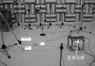 测量噪音最重要的要求是营造出一个绝对安静的环境,因此测量噪音首先需要声学实验室,即提供安静测试的场所,一般声学实验室空间都不大,四壁都会被专业的消声材料覆盖,以防止声波的反射和干涉现象。因此,声学实验室都会具有屏蔽、消声、隔声三大基本功能。除了声学实验室之外,其余就是测量设备了,其中包括在测试前校准环境声音的声校准器、声级计,录制高灵敏度麦克风和记录器,以及后期噪音分析时使用的噪音统计分析仪等多种精密仪器,图4所示就是华硕进行光驱噪音测试时的朋德(Pendec)声学实验室实况图。