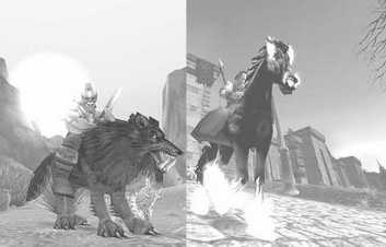 骑狼的兽人(左),亡灵术士骑着梦魇(右)