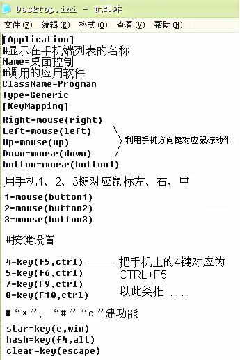 另外图5中的“1=mouse(button1),2=mouse(button2),3=mouse(button3)”,分别表示把手机的“1”、“2”、“3”键对应成鼠标的左键、右键、中键。