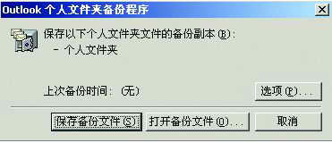 提示:如果想建立多个备份文件,必须在备份前设置新的保存文件名,否则系统会覆盖上次备份。备份的对象是Outlook个人文件夹,包括收件箱、发件箱等。